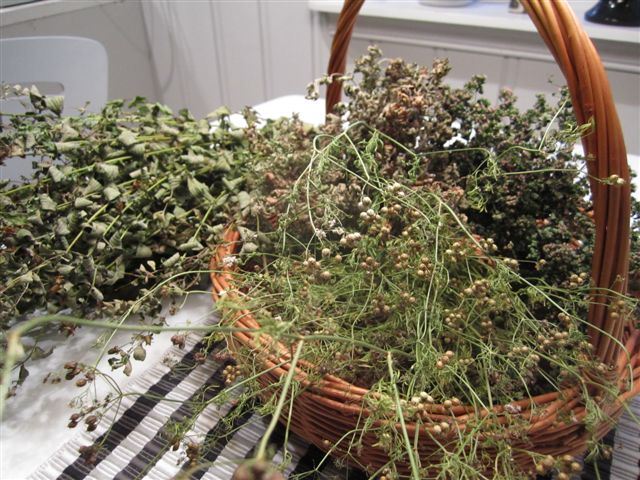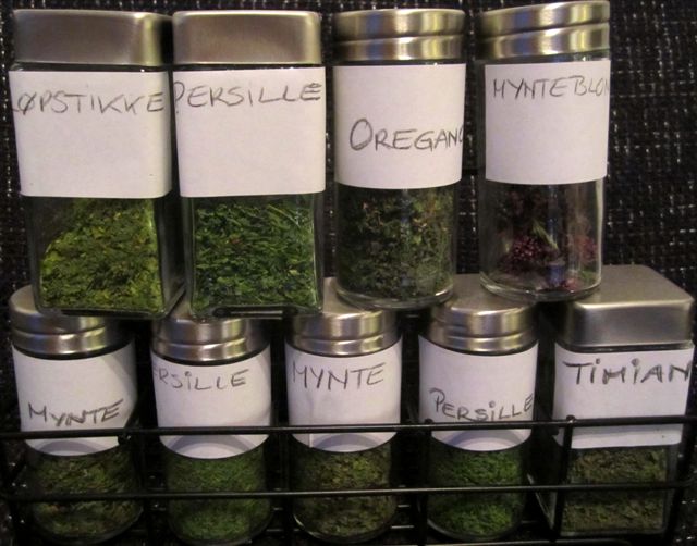 En tidlig morgenstund står to lettede timian og en kruspersille og titter ut på høststormen som raser rundt plommetreet. Godt og varmt inne på kjøkkenet.